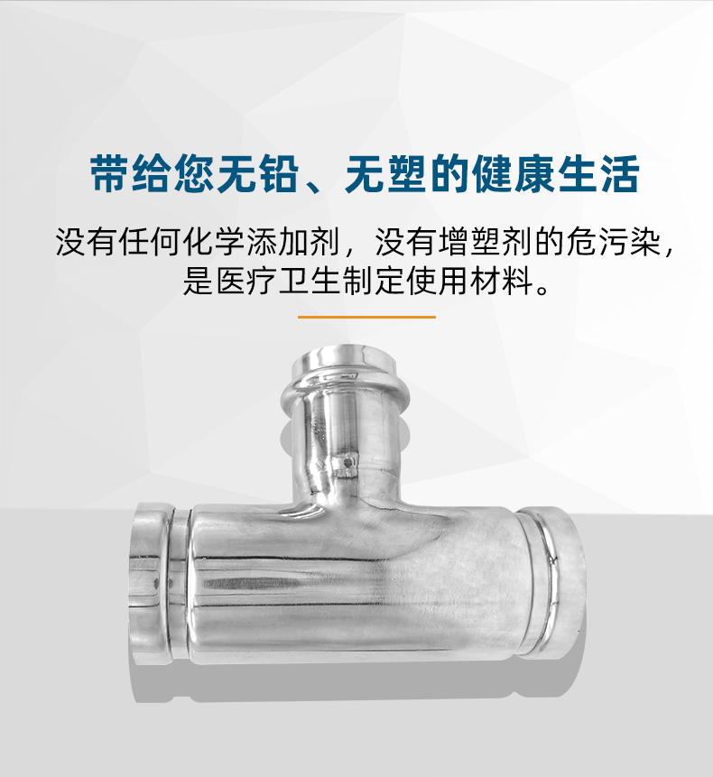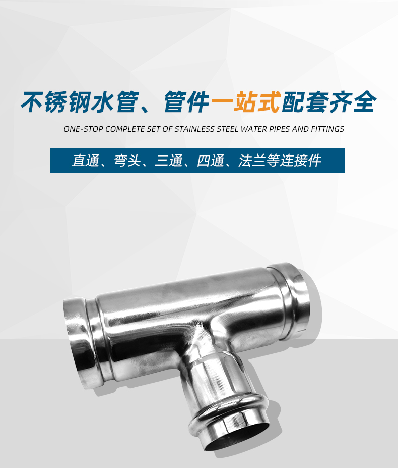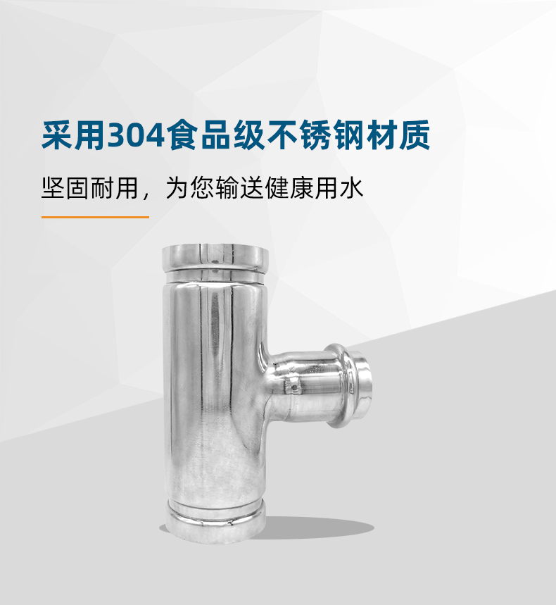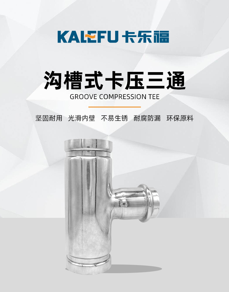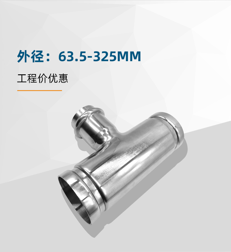 不銹鋼水管溝槽管件,溝槽卡壓三通,采用304 316L食品級不銹鋼材質,DN60-DN300通徑。本不銹鋼水管溝槽管件,溝槽卡壓三通執行標準CJ/T 152-2016.