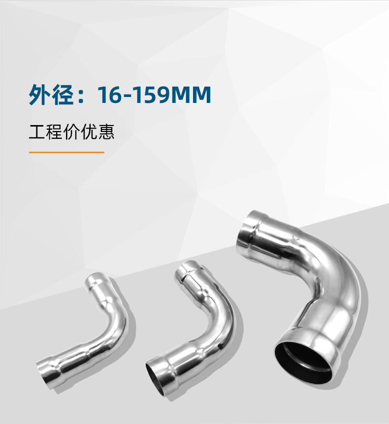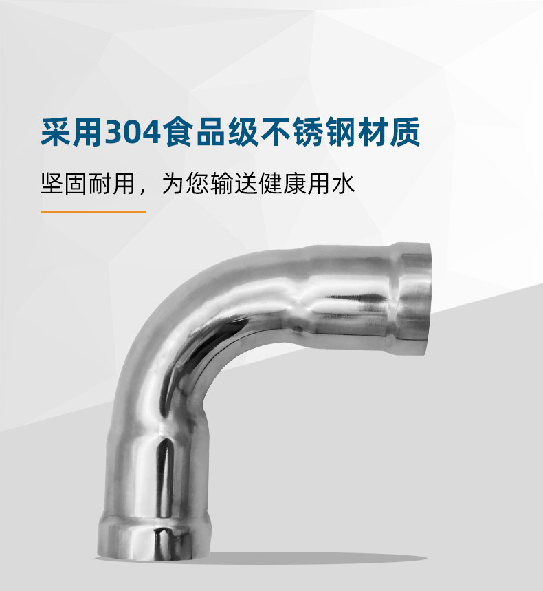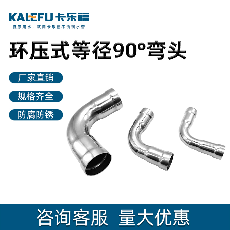 不銹鋼水管環(huán)壓式管件環(huán)壓式90°彎頭,90度彎頭,采用304 316L食品級不銹鋼材質(zhì),DN15-DN150通徑。 本不銹鋼水管環(huán)壓式管件環(huán)壓式90°彎頭,90度彎頭執(zhí)行標(biāo)準(zhǔn)GB/T 33926-2017。