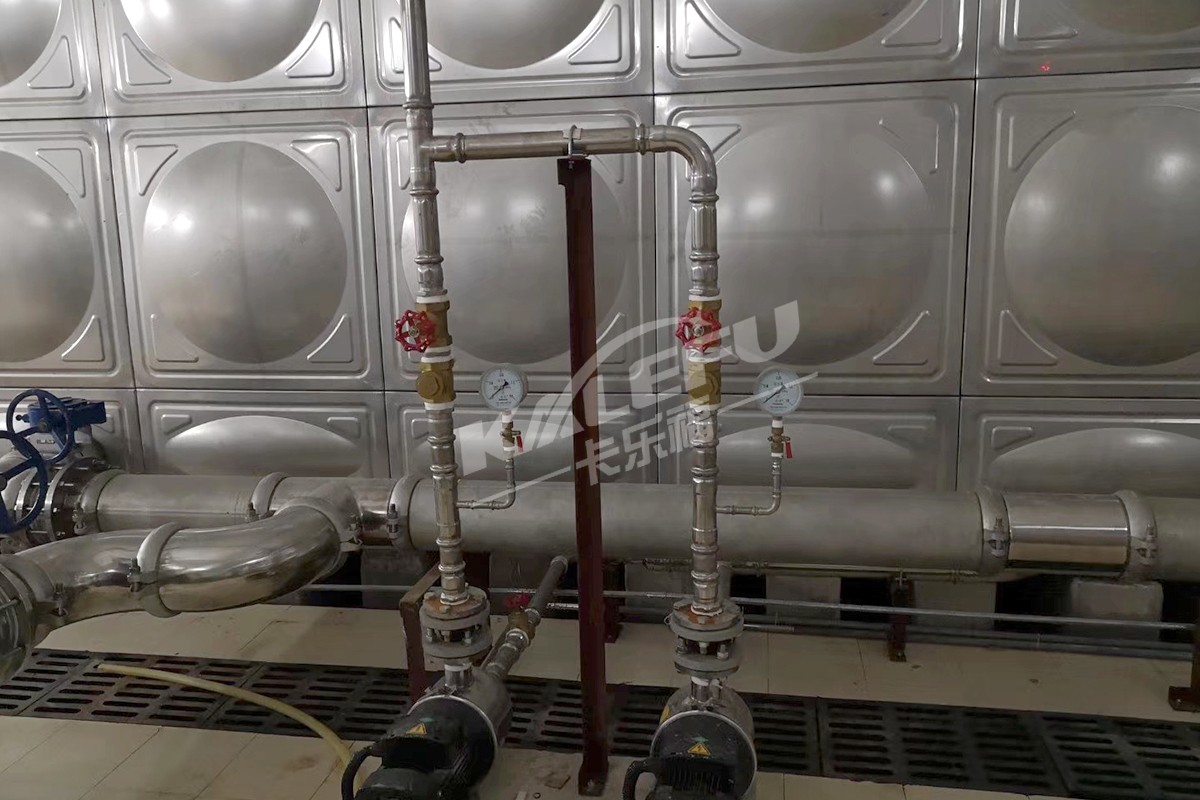 施工方式:此次水管管道道和護欄的施工,主要采用了四種連接方式,法蘭連接、雙卡壓連接、溝槽連接、焊接連接,管路設計水壓在16MPa,采用卡樂福不銹鋼的薄壁不銹鋼水管以及雙卡壓管件,焊接管件等產品,施工便利、安裝快捷,加快工程進度。